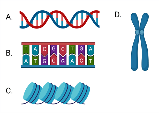 All life on Earth uses DNA as the genetic material, with exception of some viruses that use a related molecule called RNA which we will discuss in a future blog. DNA stands for DeoxyriboNucleic Acid and is a long polymer chain made up of four different subunits (abbreviated A, C, G, and T) called deoxynucleotides (Fig. 1).